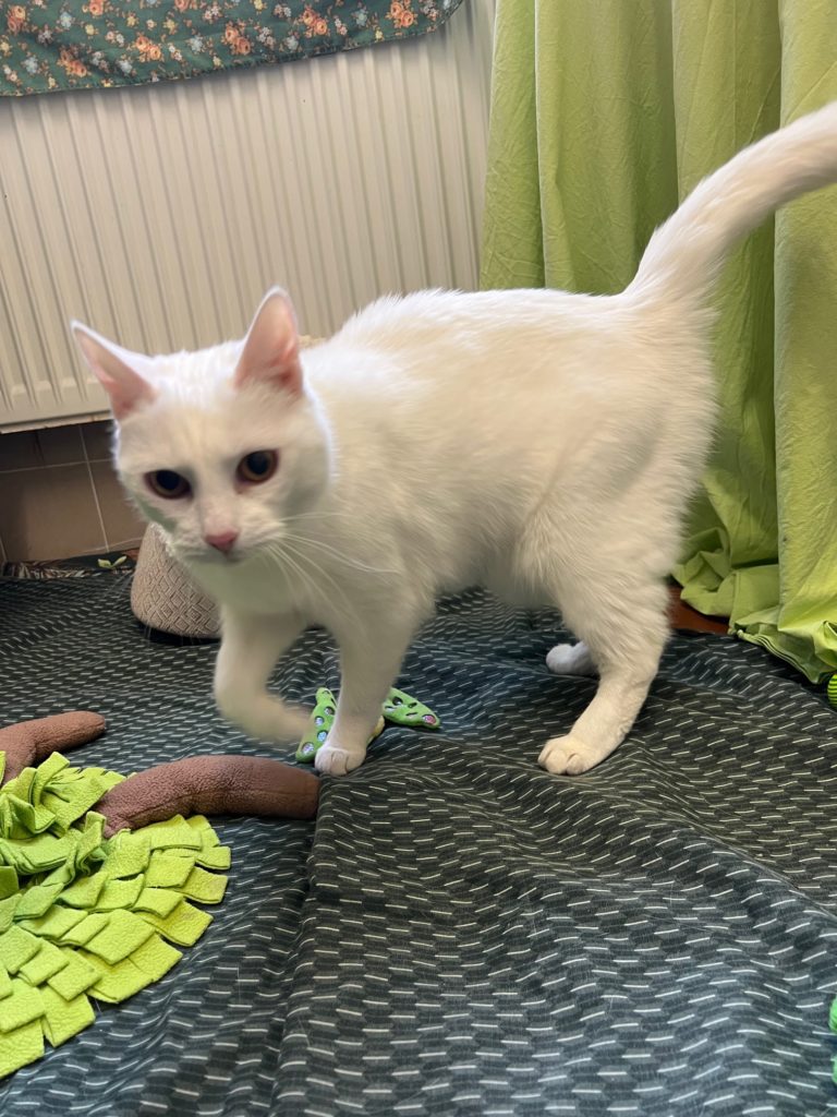 Anfangs ist sie etwas scheu und braucht einen Moment, um anzukommen und Sie in Ruhe kennenzulernen. Aber mit etwas Geduld werden Sie ganz bald belohnt: Sobald das Eis gebrochen ist, verwandelt sich Flocke in eine traumhaft verschmuste Begleiterin, die kaum noch von Ihrer Seite weicht und Ihnen mit jedem Schnurren ihre tiefe Zuneigung beweist.