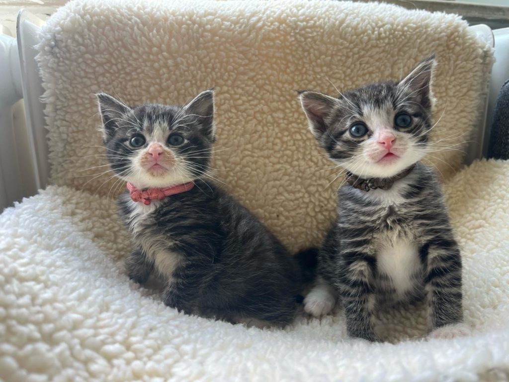 Am 18.05.2025 wurden die beiden Geschwister bei uns im Tierheim geboren. Aufgrund anfänglicher Schwierigkeiten mussten sie zusätzlich mit der Flasche aufgezogen werden – dadurch sind sie besonders menschenbezogen und anhänglich. ❤️