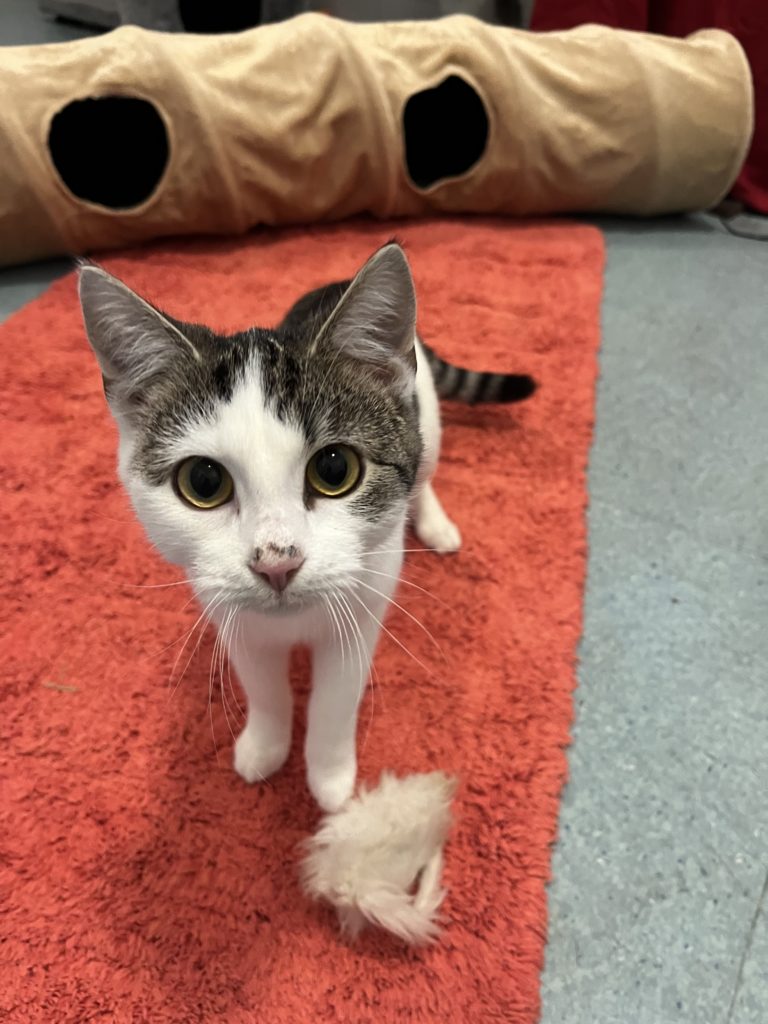 Liam kam zusammen mit Simon als Fundkater zu uns ins Tierheim. Bisher findet Liam uns noch etwas suspekt, ist aber sehr neugierig und kommt mit etwas Ruhe und Geduld gerne mal zum Beschnuppern. Mit Futter/Leckerlies kann man den kleinen Kerl ganz schnell für sich gewinnen, dann wird aus dem scheuen kleinen Kater ein regelrechter Wirbelwind. Etwas Vorsicht ist geboten, da er die Leckerlies auch gerne mal mit Krallen und Zähnen etwas doller aus der Hand nimmt.