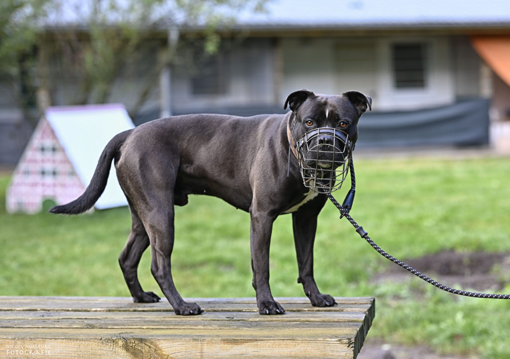 Seit Juni letzten Jahres befindet sich der stattliche Lev bei uns im Tierheim. Er ist ein sturer, charakterstarker Rüde der eine klare und konsequente Führung braucht. Er hat leider sehr früh gelernt, dass er mit seinem Verhalten durchkommt. Körperliches Begrenzen durch den Menschen stellt er gern in Frage. Ein klares Standing der neuen Halter ist hier ein Muss. Der Maulkorb ist also kein Accessoire sondern eine Notwendigkeit. Zu körperliche Arbeit quittiert er mit Skepsis. Hundeerfahrung ist hier gewünscht.