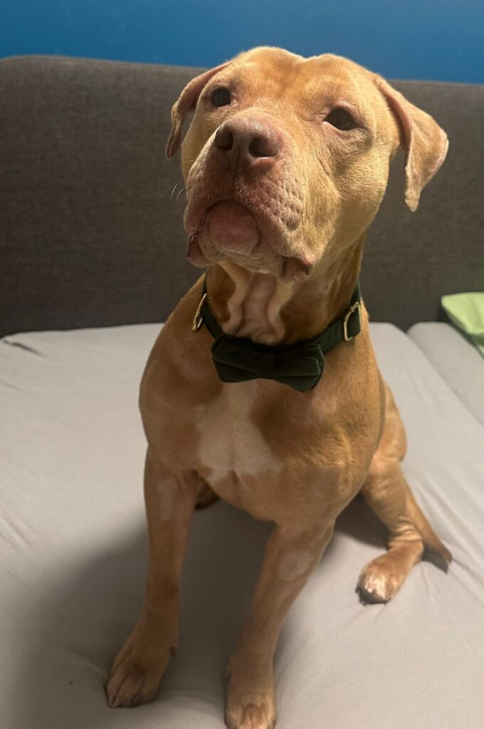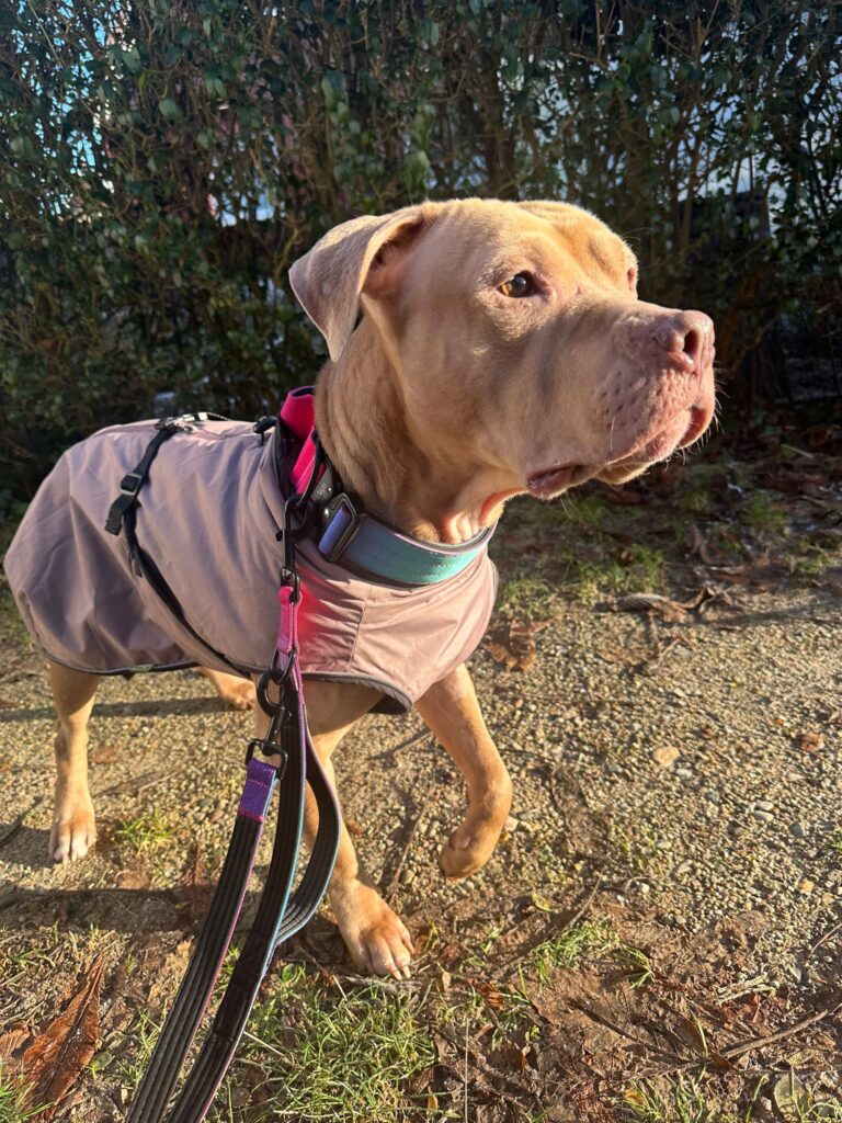 Peach ist eine liebevolle, menschenbezogene Hündin, die für ihre Bezugspersonen ein echter Schatz ist. Kuscheln gehört zu ihren größten Leidenschaften. In ruhigen, klar strukturierten Umgebungen blüht sie auf, während ihr zu viel Trubel aktuell noch schnell zu viel wird.